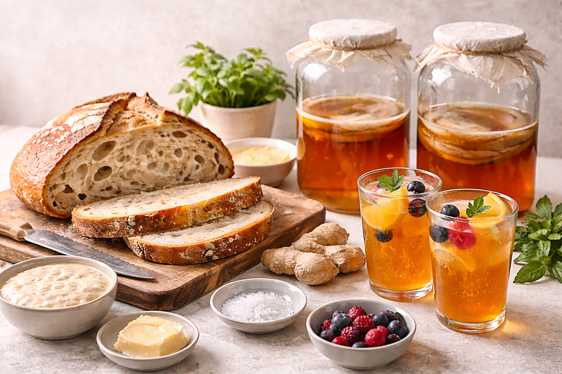 A gentle, practical introduction to home fermentation. Learn to brew kombucha and bake naturally fermented sourdough with confidence, understanding the process so it fits easily into real, everyday life.